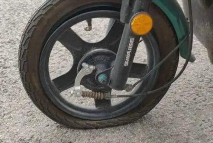 师傅熟练地开始拆卸后轮,由于是带电机的轮子,过程比较繁琐。就在他卸下轮子,准备扒胎时,突然“咦”了一声,指着刹车对李先生说:“老板,你这刹车片都磨没了,你看,铁磨铁了,很危险的!再骑下去会把刹车锅(刹车鼓)都磨坏,到时候换一套要一百多。”
