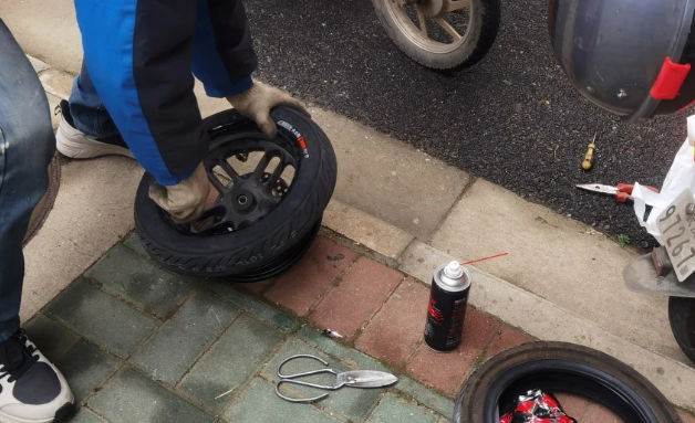 安装完毕后,师傅并没有急于将轮子装回车体。他拿出一根气管,连接到新轮胎的气门嘴上,开始充气。他一边充气,一边用手指感受轮胎的膨胀程度,并时不时地查看气压表,确保胎压达到标准范围。他解释说:“胎压非常关键,过高容易爆胎,过低则会增加阻力,影响续航,甚至损坏轮毂。”充好气后,他更是细致地用肥皂水检查了轮胎与轮毂的结合处,确保没有一丝漏气,这才放心。整个过程,从车辆固定、旧胎拆卸、新胎安装到充气检查,每一步都做得一丝不苟,展现了扎实的专业技能和对细节的 追求。